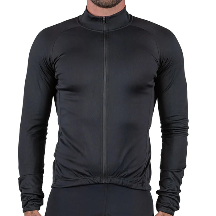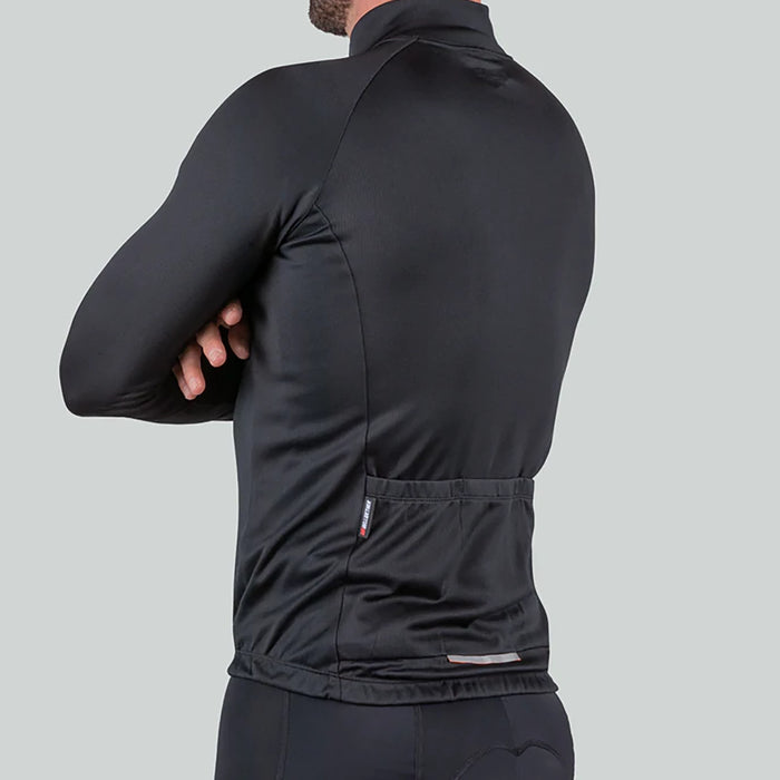 Mid-weight jersey will keep you warm, dry and comfortable on those chillier days in the saddle. Tightly knit fabric, tall collar and silicone gripper on waistline help seal out the elements. Large pockets provide ample storage for essentials while still offering enough room to stow away a jacket, vest or other cold weather accessories as temperatures dictate on longer training rides.