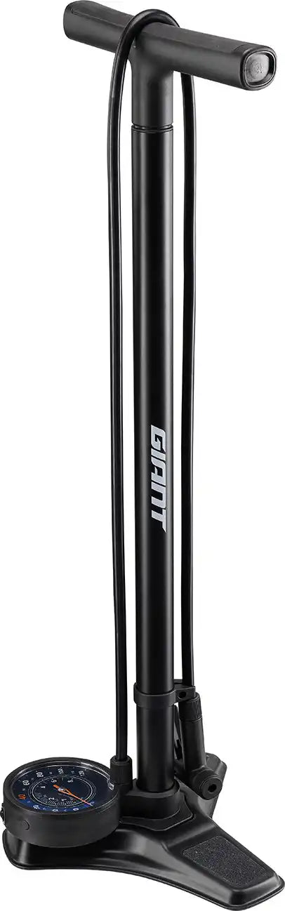The Control Tower Elite floor pump is built to last with a stainless steel barrel and steady base and features an easy to read, over-sized gauge as well as tubeless accessories stored right in the rubber padded ergonomic handle.